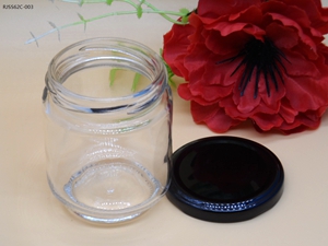 6 oz round / tall base jar with 63mm lug lid black plastisol