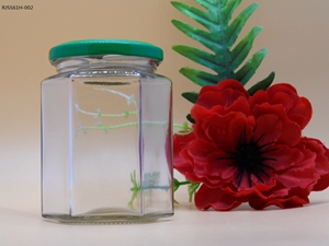 10 oz Hexagon Gourmet Canning Jar. You can put up your best (jam, preserve, jelly, spread, sauce, condiment, etc.) in the same style as the fanciest gourmet specialties! The facets of this jar make for a lovely candle container; and you can saveshelf space since they fit together like a honeycomb. Our wholesale price-points mean you don't have to spend too much time surfing and shopping! This jar takes a 63mm lug (twist-off) lid - choose from our variety of colors to make your product stand out even more!